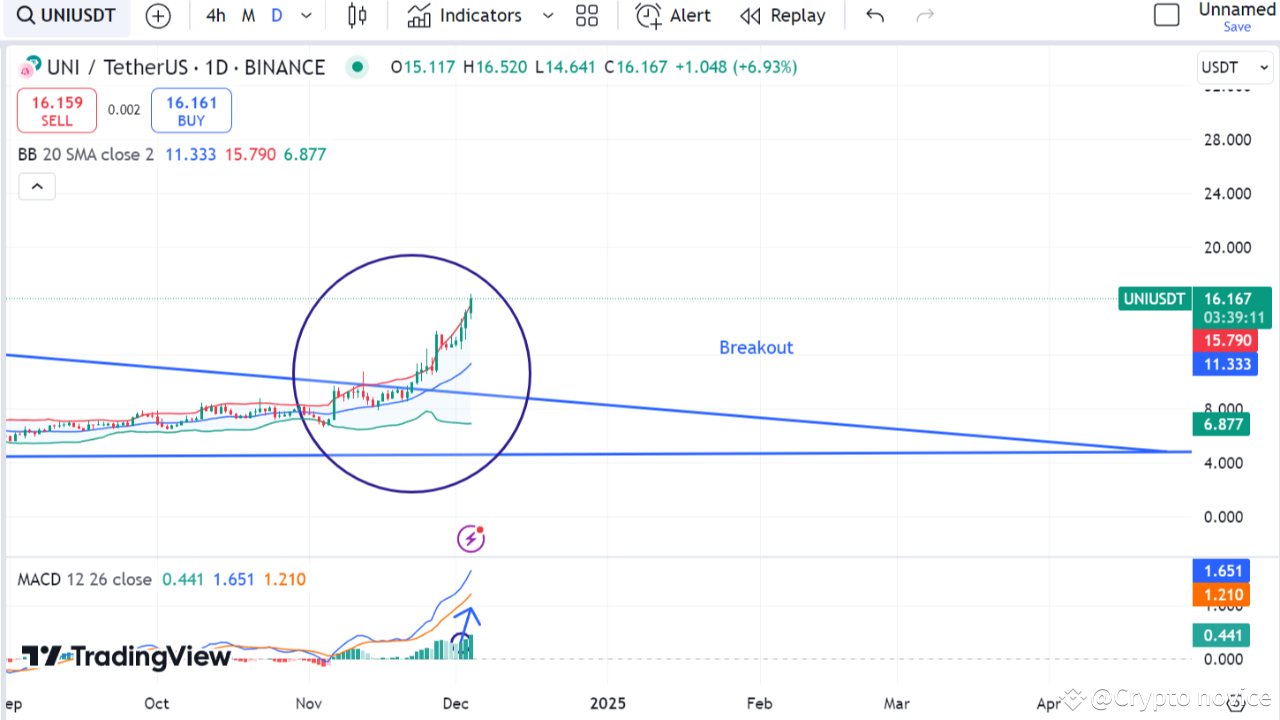 Hier können wir sehen, dass das Uni-Paar ETH-Chart bullish ist. Es hält das Unterstützungsniveau der Bollinger-Bänder. Es gibt auch Verkaufsdruck für einen Retest. Jetzt wird es boom. Wir können long für diese Münze gehen.