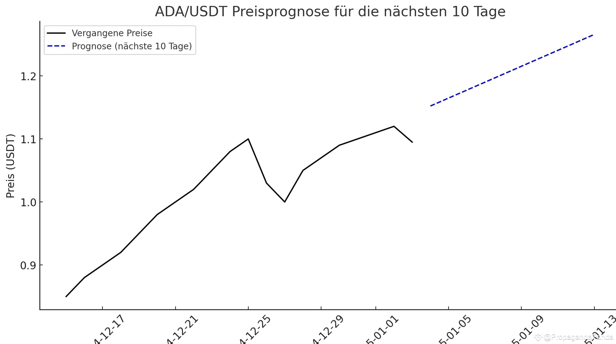 Hier ist die Preisprognose für ADA/USDT für die nächsten 10 Tage. Die Analyse zeigt, dass der Preis voraussichtlich weiter steigen wird, wobei ein Zielbereich um 1.20 - 1.22 USDT bis zum 8. Januar realistisch erscheint.