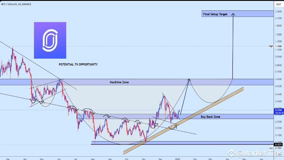 NFP/USDT hat einen soliden Boden etabliert, wobei der Preis konsequent die dynamische Trendlinie respektiert, was auf eine starke Unterstützung hinweist. Diese Struktur deutet auf die potenzielle Bildung eines umgekehrten Kopf-Schulter-Musters (ISHS) hin, ein klassisches bullisches Umkehrsetup.