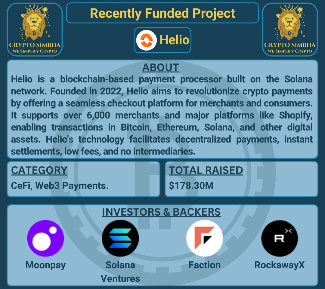 🔹Über: Helio ist ein Blockchain-basierter Zahlungsprozessor, der auf dem Solana-Netzwerk basiert. Helio wurde 2022 gegründet und zielt darauf ab, Kryptozahlungen zu revolutionieren, indem es eine nahtlose Checkout-Plattform für Händler und Verbraucher bietet. Es unterstützt über 6.000 Händler und große Plattformen wie Shopify und ermöglicht Transaktionen in Bitcoin, Ethereum, Solana und anderen digitalen Assets. Helios Technologie ermöglicht dezentrale Zahlungen, sofortige Abrechnungen, niedrige Gebühren und keine Zwischenhändler. Helio wurde kürzlich von MoonPay für 175 Millionen US-Dollar übernommen und wird seine Infrastruktur erweitern und seine Zahlungsmöglichkeiten weltweit verbessern. Das Projekt hat Transaktionen im Wert von über 1,5 Milliarden US-Dollar abgewickelt und wächst weiter mit dem Ziel, die Kaufkraft von Millionen von Krypto-Inhabern freizusetzen. Helios Integration mit Plattformen wie Discord und WooCommerce macht es zu einem wichtigen Akteur im Bereich E-Commerce und Abonnementzahlungen. Die Übernahme durch MoonPay entspricht Helios Vision, Zahlungen mit Krypto neu zu definieren und sein Wachstum zu beschleunigen. Gemeinsam planen sie, umfassende Zahlungslösungen anzubieten und die Transaktionseffizienz für Händler und Verbraucher zu verbessern.🚀🌐