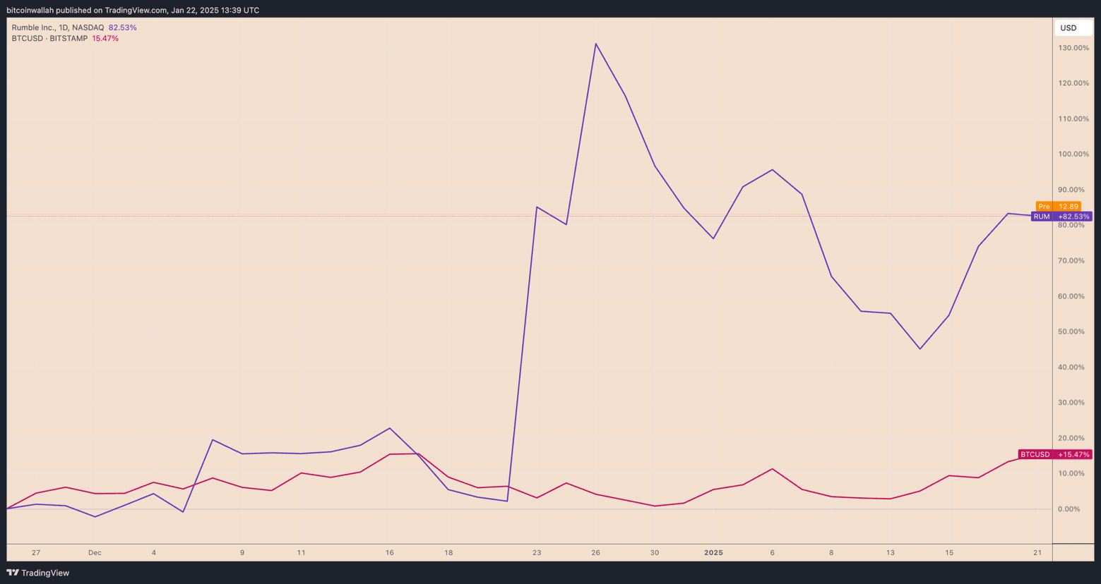 Rumbles Ankündigung kam nur wenige Wochen, nachdem sie Pläne skizzierten, 20 Millionen Dollar an überschüssigen Barreserven in Bitcoin zu investieren. CEO Chris Pavlovski deutete an, dass Bitcoin ein integraler Bestandteil der zukünftigen Unternehmensstrategie werden wird – und die Investoren lieben es.