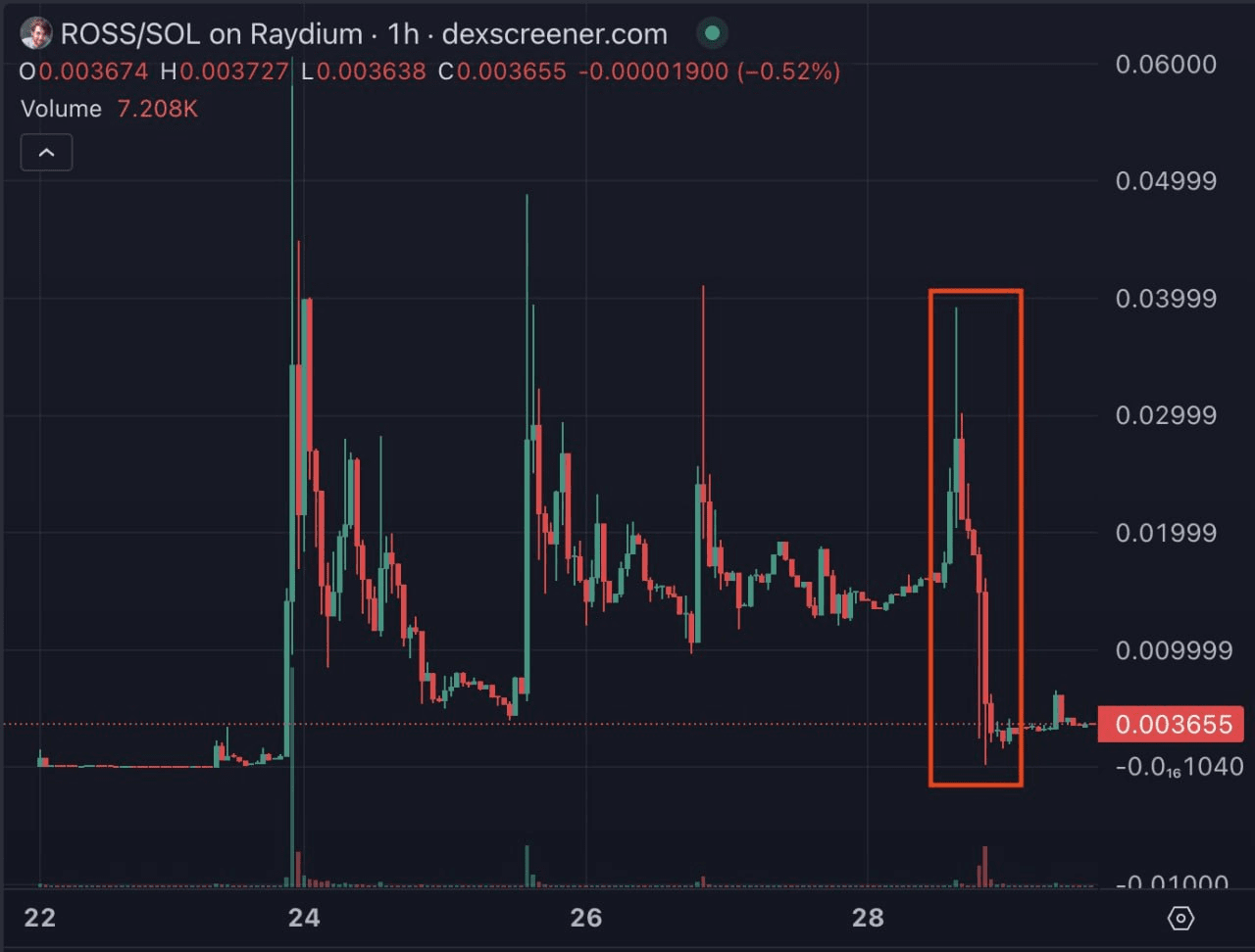 🔹 Der Preis ist um 90% gefallen, Bots haben 600.000 $ verdient, und Ross… nun, Ross wurde rekt.