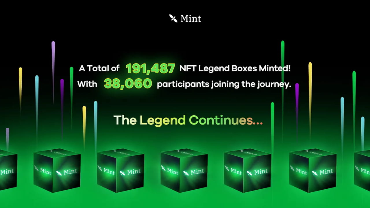 Mit dem erfolgreichen Abschluss des NFT Legend Box-Anspruchsevents läutete das Mint Blockchain-Ökosystem ein weiteres großes Fest ein! An der Veranstaltung nahmen mehr als 38.000 NFT Legend-Wallets teil und es wurden insgesamt 191.487 NFT Legend-Boxen geprägt, was das hohe Maß an Aktivität und Enthusiasmus der Community zeigt.