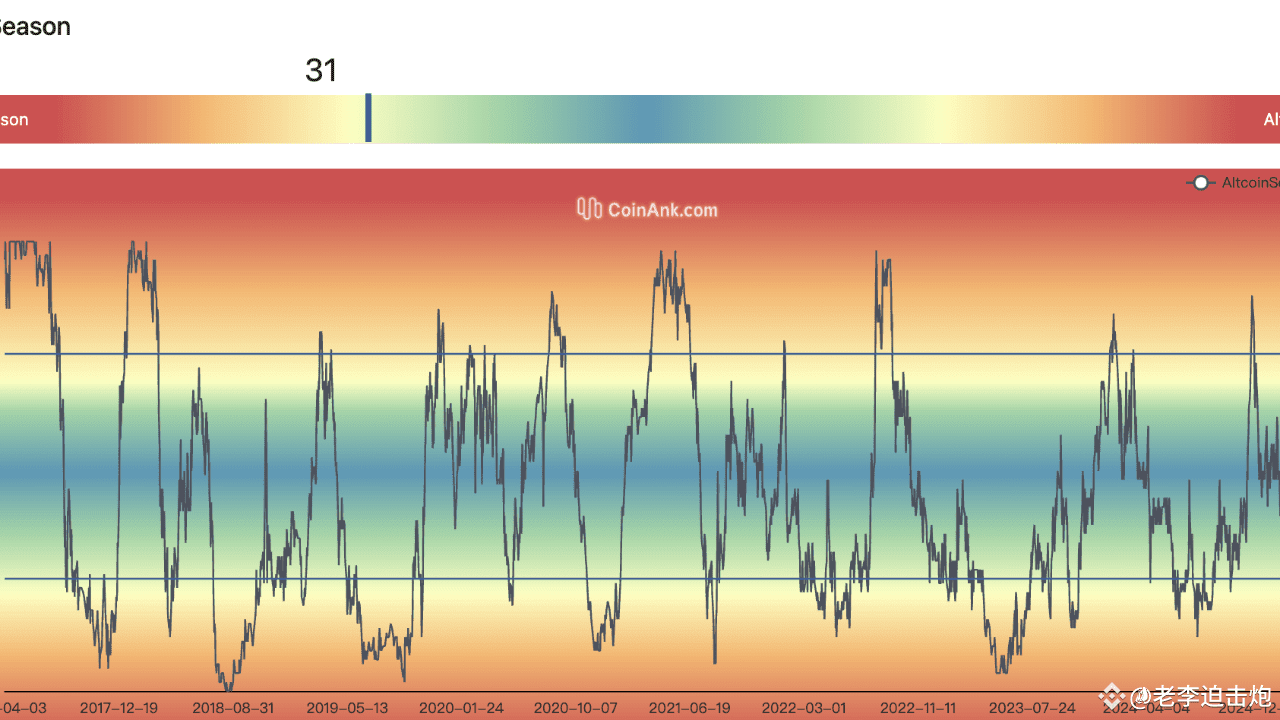 Aus der Perspektive der Marktzyklen und der Kapitalrotation glauben wir, dass der aktuelle saisonale Altcoin-Index auf 31 Punkte gefallen ist (11 Punkte weniger als letzte Woche). Dies spiegelt wider, dass sich der Kryptomarkt immer noch in der Bitcoin-dominierten Phase befindet und die Gelder noch nicht in großem Umfang in Altcoins migriert sind. Der Index misst den Anteil der 100 besten Altcoins, die Bitcoin innerhalb von 90 Tagen übertreffen. Derzeit erfüllen nur 31 % den Standard und liegen damit weit unter dem Altcoin-Saisonschwellenwert von 75 %, was darauf hindeutet, dass sich die Risikobereitschaft der Anleger immer noch auf Kernanlagen wie Bitcoin konzentriert.