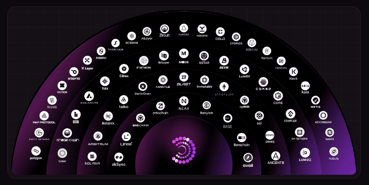 ⇢ Multi-Chain-Support: Unterstützt über 70 Ketten, einschließlich Bitcoin-Ökosysteme und EVM-Ketten, mit über 20 Millionen UserOps und der Sicherung von Vermögenswerten im Wert von über 2 Milliarden US-Dollar.
