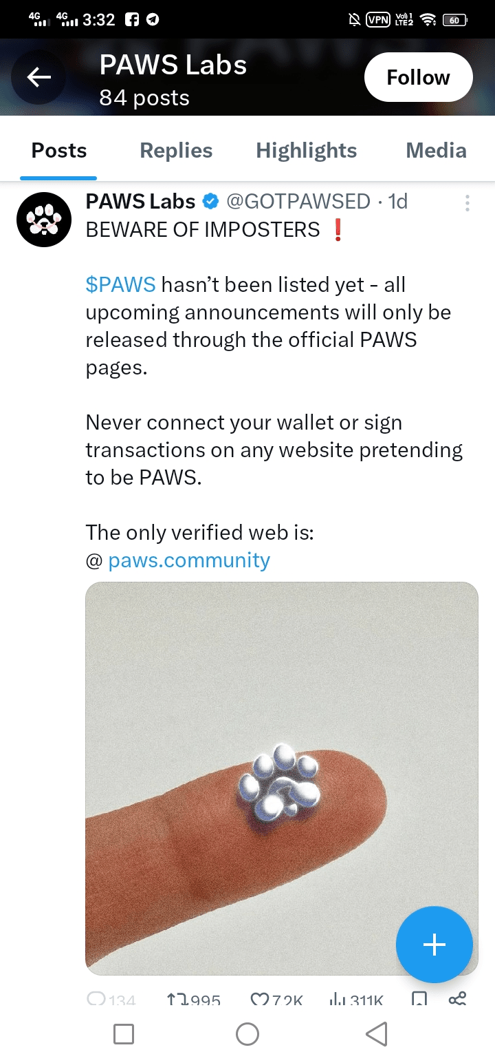 Paws hat ein neues Update auf ihrem offiziellen X-Konto veröffentlicht, das:
