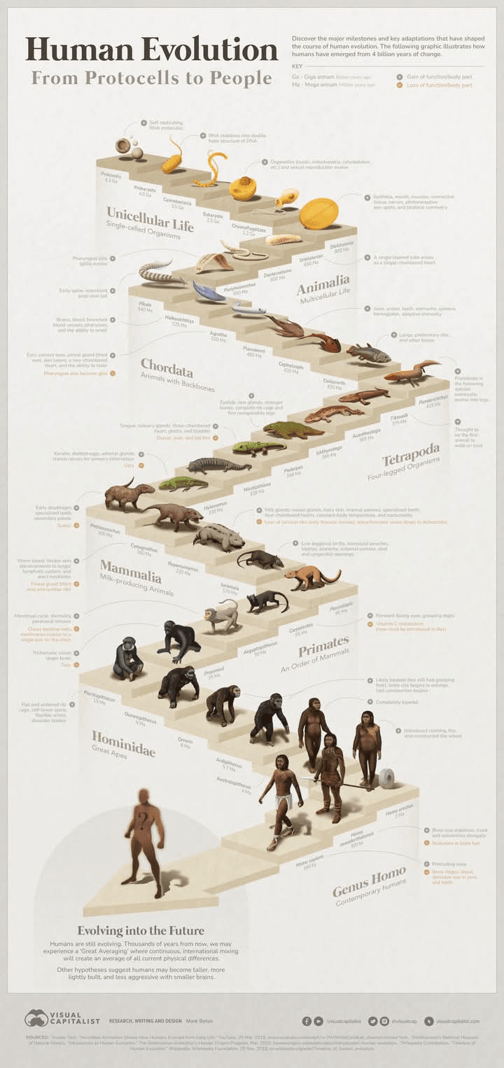 Von Protocells zu Menschen: Eine visuelle Reise durch 4 Milliarden Jahre menschliche Evolution