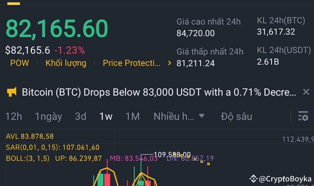 * Kurzfristiger Trend: Leichter Abwärtstrend: Der Preis steht unter Druck, da er unter dem EMA 7 und dem mittleren Bollinger-Band liegt. Negatives MACD und sinkendes Handelsvolumen zeigen, dass die Aufwärtsdynamik noch nicht zurückgekehrt ist. Leichte Erholung: Der Stochastic RSI befindet sich im überverkauften Bereich (4,95) und das MACD zeigt Anzeichen einer Verengung zum Signal-Linie, was darauf hindeutet, dass eine kleine Erholung stattfinden könnte, möglicherweise auf 82.338 (MA 7) oder 84.644 (oberes Bollinger-Band).