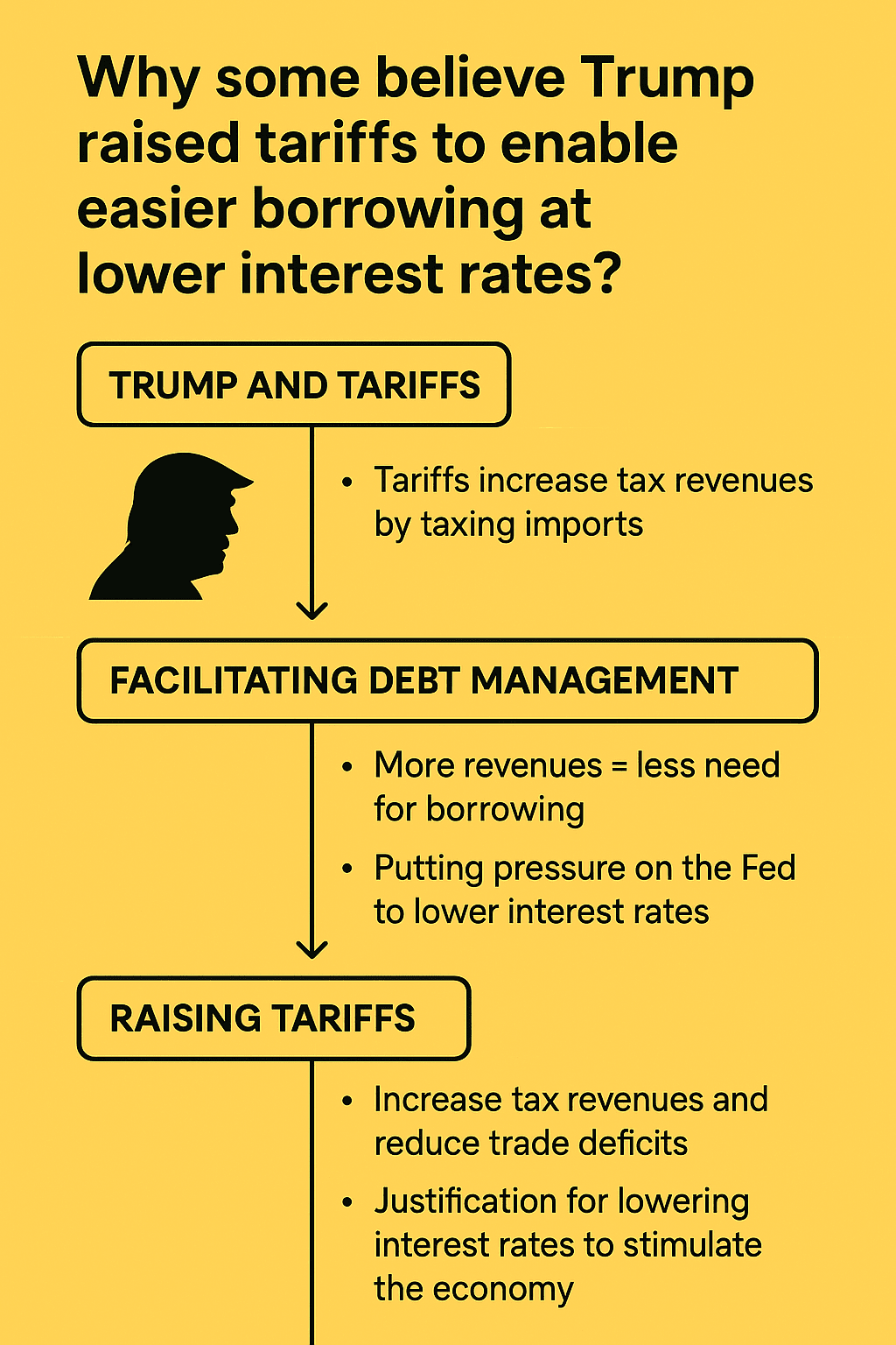 Hier betritt ein weiterer Akteur die Bühne: die Federal Reserve (die Fed), die die Zinssätze festlegt. Wenn die Wirtschaft aufgrund der Zölle langsamer wird (was manchmal beabsichtigt ist), kann die Fed beschließen, die Zinssätze zu senken, um die Wirtschaft anzukurbeln.