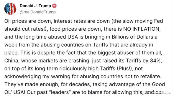 China gibt jedoch nicht nach – sie haben gerade eine massive Erhöhung der Zölle um 34% verhängt, trotz ihrer eigenen wirtschaftlichen Schwierigkeiten.