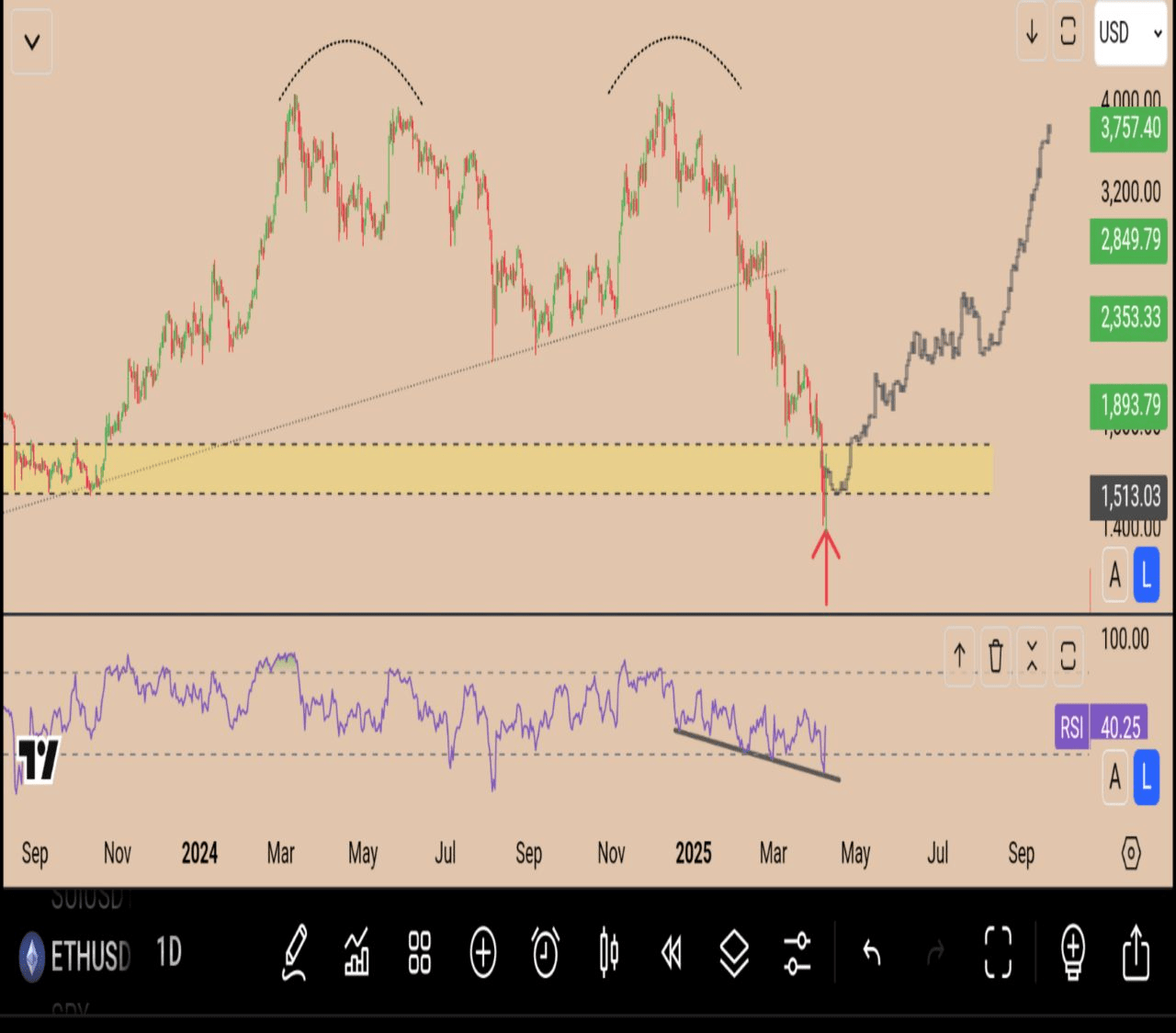 Und mit einem starken Kaufmomentum könnten wir das Ziel von 3757 $ und dann 4200 $ im mittelfristigen Zeitraum sehen.