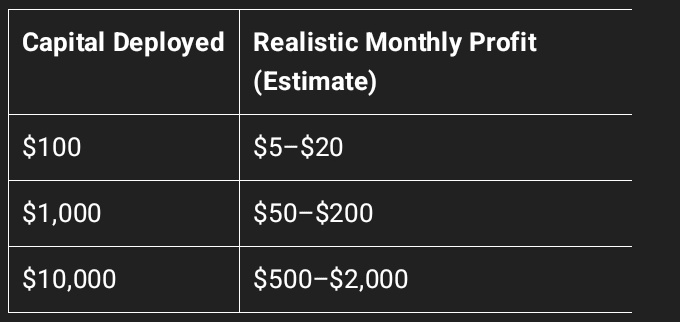 (Vorausgesetzt 5–20 % monatliche Renditen in aktiven Märkten.)