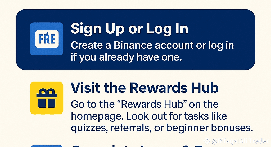 Gehe zum „Rewards Hub“ auf der Binance-Homepage. Du findest Anfängeraufgaben, Willkommensboni und Quizze, die kostenlose Krypto anbieten.