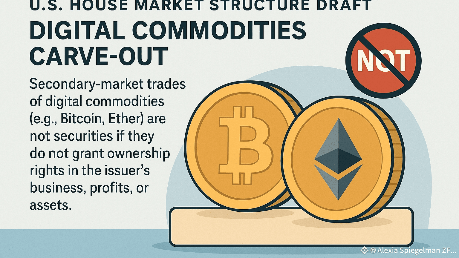 Ein neuer Entwurf für eine Diskussion im Haus stellt klar, dass Sekundärmarktgeschäfte mit digitalen Rohstoffen (z.B. Bitcoin, Ether) keine Wertpapiere sind, wenn sie keine Eigentumsrechte am Geschäfts-, Gewinn- oder Vermögenswerte des Emittenten gewähren.