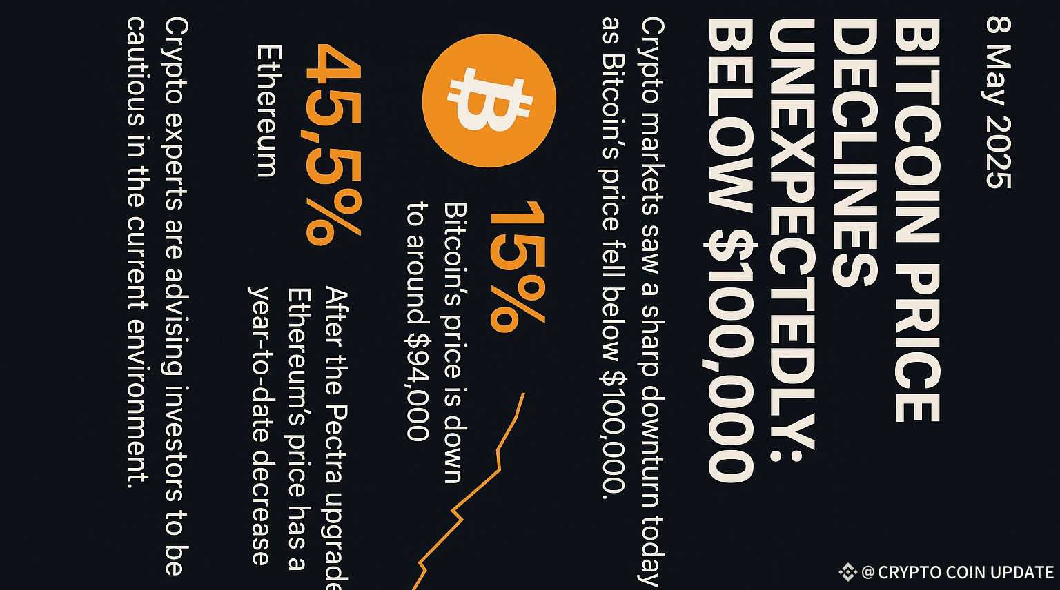 8. Mai 2025 — Heute erlebte der Kryptomarkt einen unerwarteten Rückgang, als der Preis von Bitcoin unter die 100.000 $-Marke fiel. Dieser Rückgang folgt auf die Unsicherheit, die durch die Ankündigung von US-Präsident Donald Trump über die "Befreiungstag"-Zölle ausgelöst wurde.