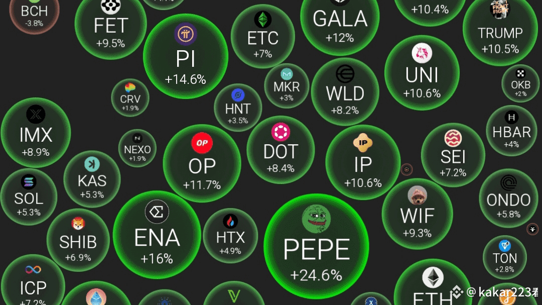 • $ENA , #OP , $WLD , und $UNI leuchten alle auf dem Board