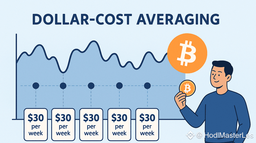 Wenn du einmal pro Woche Bitcoin (BTC) $BTC für 30 US-Dollar (theoretisch — “$”) kaufst, wendest du eine Strategie an, die DCA (Dollar-Cost Averaging) genannt wird — die Durchschnittskosten in Dollar.
