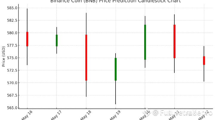 Das oben stehende Kerzenchart erfasst die Preisbewegung von BNB über die letzten 7 Tage und hebt hervor: