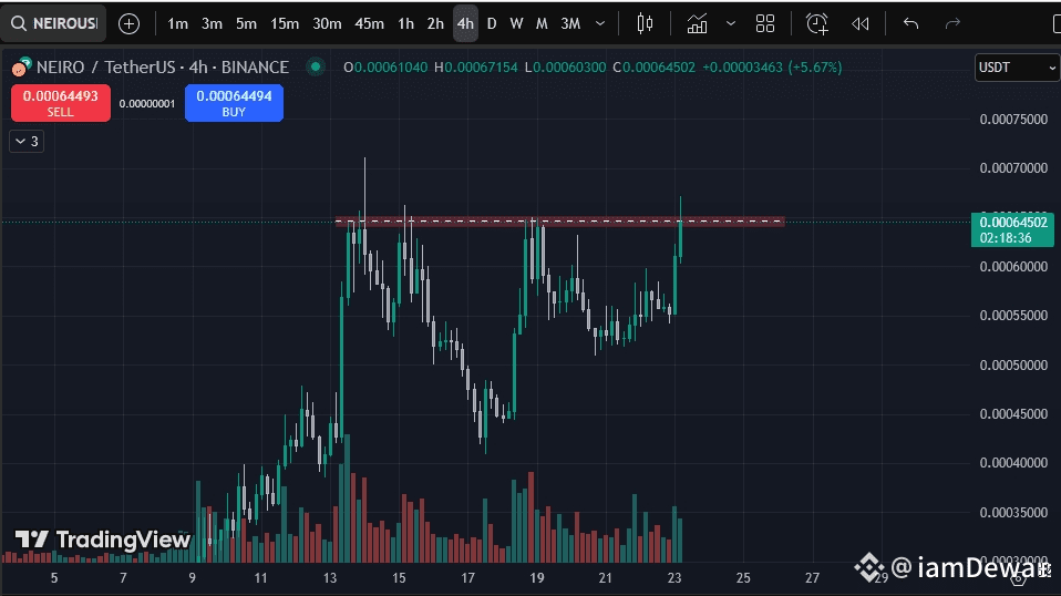 NEIRO bildet höhere Tiefs, was auf eine bullische Akkumulation hindeutet. Der heutige Durchbruchsversuch könnte der Beginn eines Bereichs-Durchbruchs oder sogar eines Becher-und-Griff-Spiels sein.