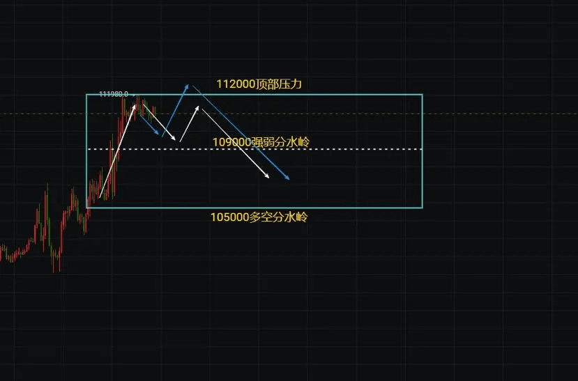 Im vierstündigen Zeitrahmen bildet sich eine Konsolidierungsbox. Oberhalb von 112000 gibt es Widerstand, tagsüber sollte man besonders auf den Rückgang auf 109000, den starken Wendepunkt, achten. Wenn 109000 nicht durchbrochen wird, wird es weitere Versuche geben, die Hochs zu testen. Sollte dieser Punkt jedoch durchbrochen werden, wird sich der Markt direkt schwächen. In der Zukunft sollte man den Gewinn und Verlust bei 105000 im Auge behalten, dieser Punkt ist seit dem Anstieg von 74000 der Wendepunkt zwischen Bullen und Bären. Wenn er verloren geht, wird der Markt in eine Phase des Wechsels von Bullen zu Bären eintreten. Insgesamt bleibt die langfristige bullische Sichtweise unverändert, kurzfristig halte ich an der Ansicht fest, dass nach einem scheinbaren Hochpunkt-Rückgang und einer Konsolidierung der Markt erneut steigen wird.
