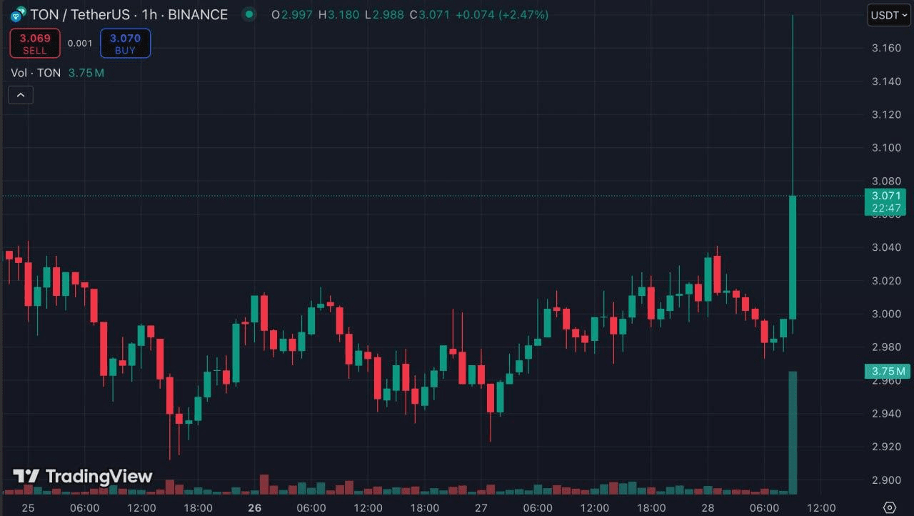 Seit seiner Listung auf Binance im August 2024 erlebte Toncoin einen bemerkenswerten Anstieg mit einem intraday Gewinn von 9,09 %, was den Preis auf $6,26 drückte. Dieser Anstieg wurde weiter durch die Integration von Tether (USDT) im TON-Netzwerk gestärkt, was seine Nützlichkeit erhöht und mehr Nutzer anzieht.