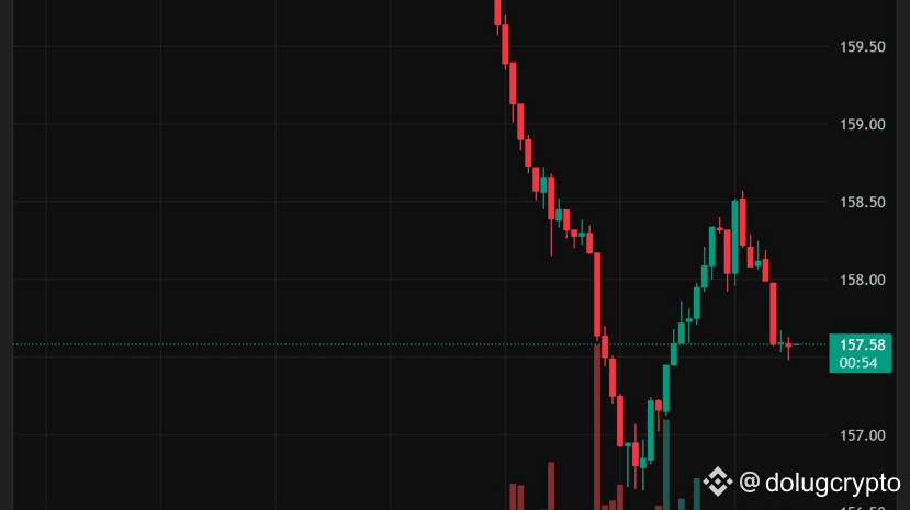 Von 20:00 bis 20:15 UTC erreichte SOL den kurzfristigen Tiefpunkt von 156,50 USD und stabilisierte sich dann vorübergehend. Dies ist die vorübergehende Unterstützung im Handel.