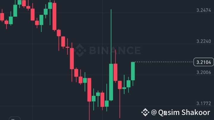 Ein klarer Bruch über $3.22 könnte Momentum in Richtung des Widerstandsbereichs von $3.26–$3.28 auslösen, da das Volumen wieder zunimmt.