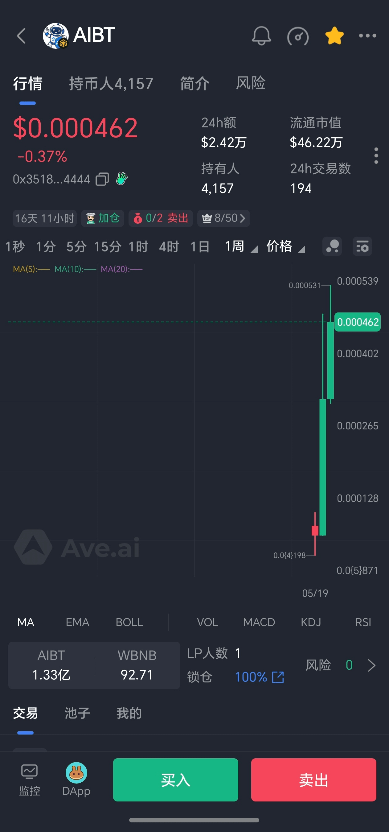 Dieser plötzliche Anstieg hat die Anleger ganz schön durcheinandergebracht. Die leeren Hände klopfen sich auf die Oberschenkel und bedauern, nicht eingestiegen zu sein; die mit wenigen Beständen treten frustriert auf den Boden und hassen sich selbst, weil sie nicht mehr gekauft haben; die voll investierten Anleger fangen an zu lachen, geraten aber später in Panik: 'Könnte das die Vorahnung eines 'Schlachthofes' des großen Investors sein? Wann ist es sicher zu gehen?' Jemand hat scherzhaft gesagt, dass in der AIBT-Holding-Gruppe jetzt die Hälfte der Leute jubelt und sagt: 'Der finanzielle Freiheit steht vor der Tür', während die andere Hälfte verrückt nach 'Vorzeichen eines Krypto-Marktrückgangs' sucht. Diese magisch-realistische Szene könnte fast einen Film (die Abenteuer von AIBT in der Krypto-Welt) drehen.