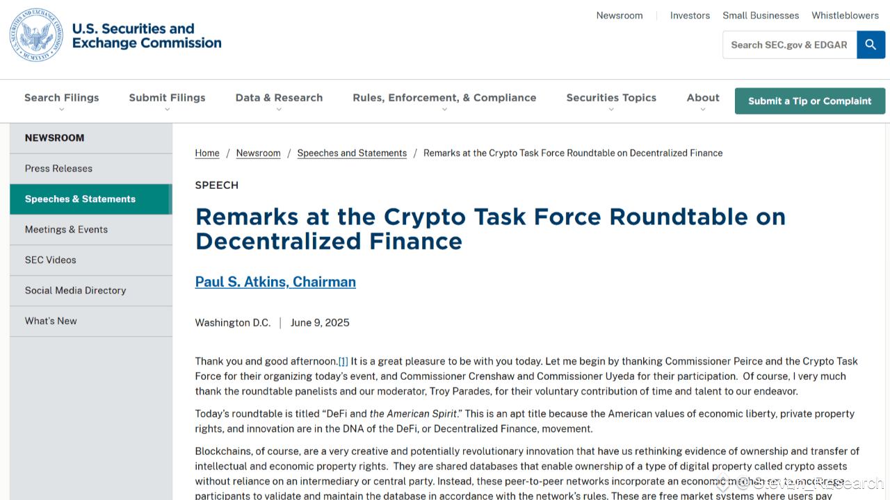 SEC-Vorsitzender Paul Atkins äußerte sich am 10.06.2025 in der Podiumsdiskussion "DeFi und der amerikanische Geist"; diese Äußerungen sind revolutionär für das kommende DeFi-Zeitalter, viele mit DeFi verbundene Token wurden ins Leben gerufen.