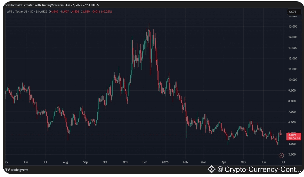 يتداول أبتوس عند 4.829 دولار أمريكي على الرسم البياني اليومي | المصدر: رسم بياني لزوج APTUSDT على Tradingview