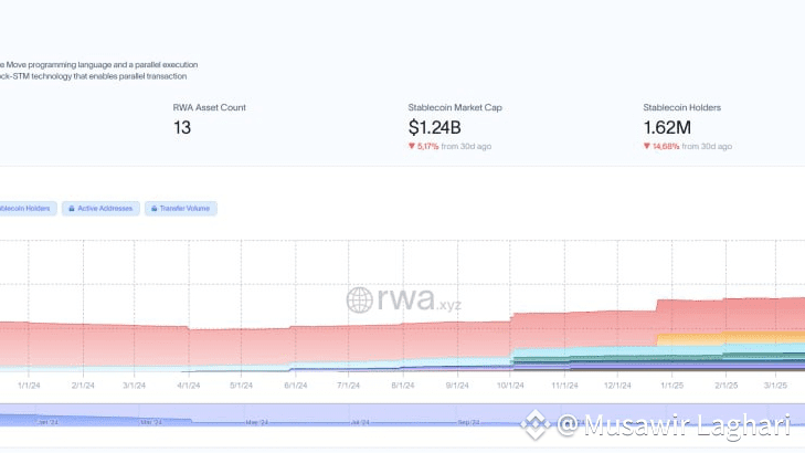 In den letzten 30 Tagen stieg der Gesamtwert der in der realen Welt gesperrten Vermögenswerte (RWA) des Aptos-Netzwerks um 56,28 % auf 538 Millionen Dollar, wodurch es nach Ethereum und ZKsync Era das drittgrößte RWA-Netzwerk wurde. Der TVL besteht aus nahezu 420 Millionen Dollar in privatem Kredit, 86,93 Millionen Dollar in US-Staatsanleihen und 30,72 Millionen Dollar in institutionellen alternativen Fonds.