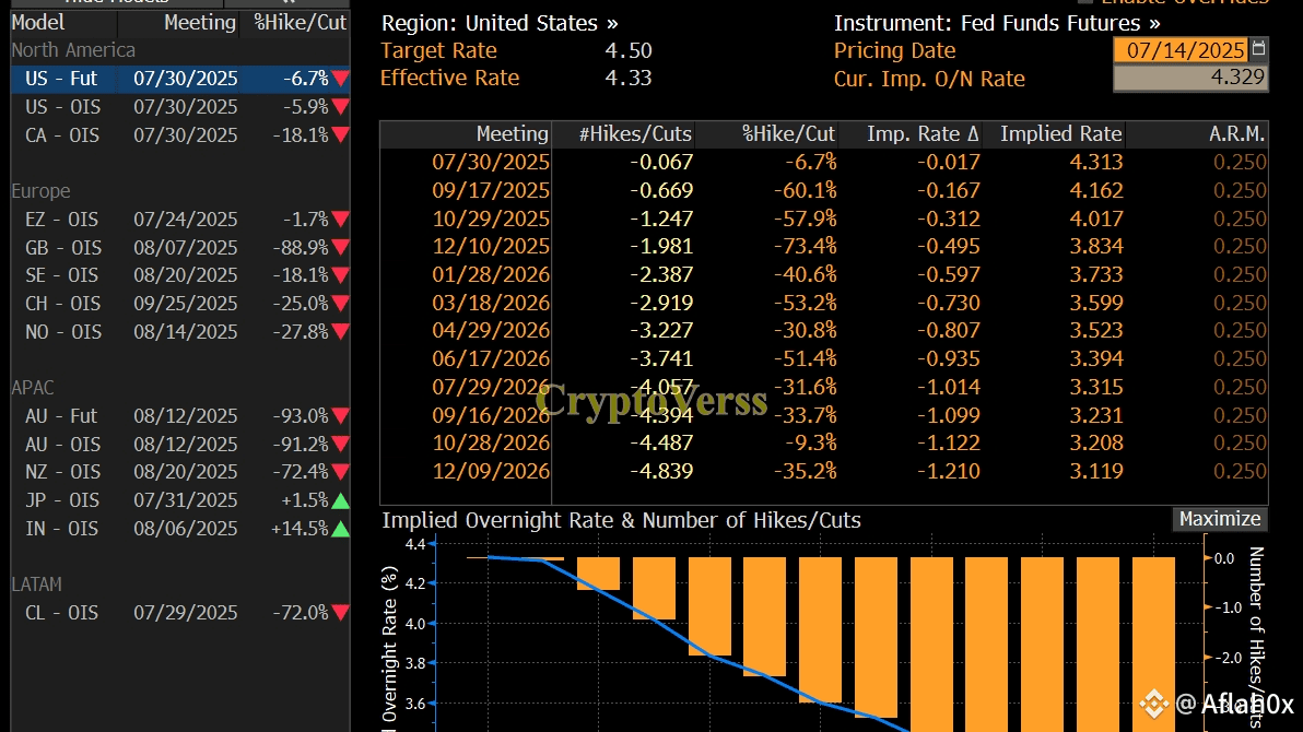 Es gibt eine 6,7 %ige Wahrscheinlichkeit für eine Zinssenkung im Juli. Bloomberg Economics prognostiziert, dass zu diesem Zeitpunkt nur eine Zinssenkung stattfinden wird.