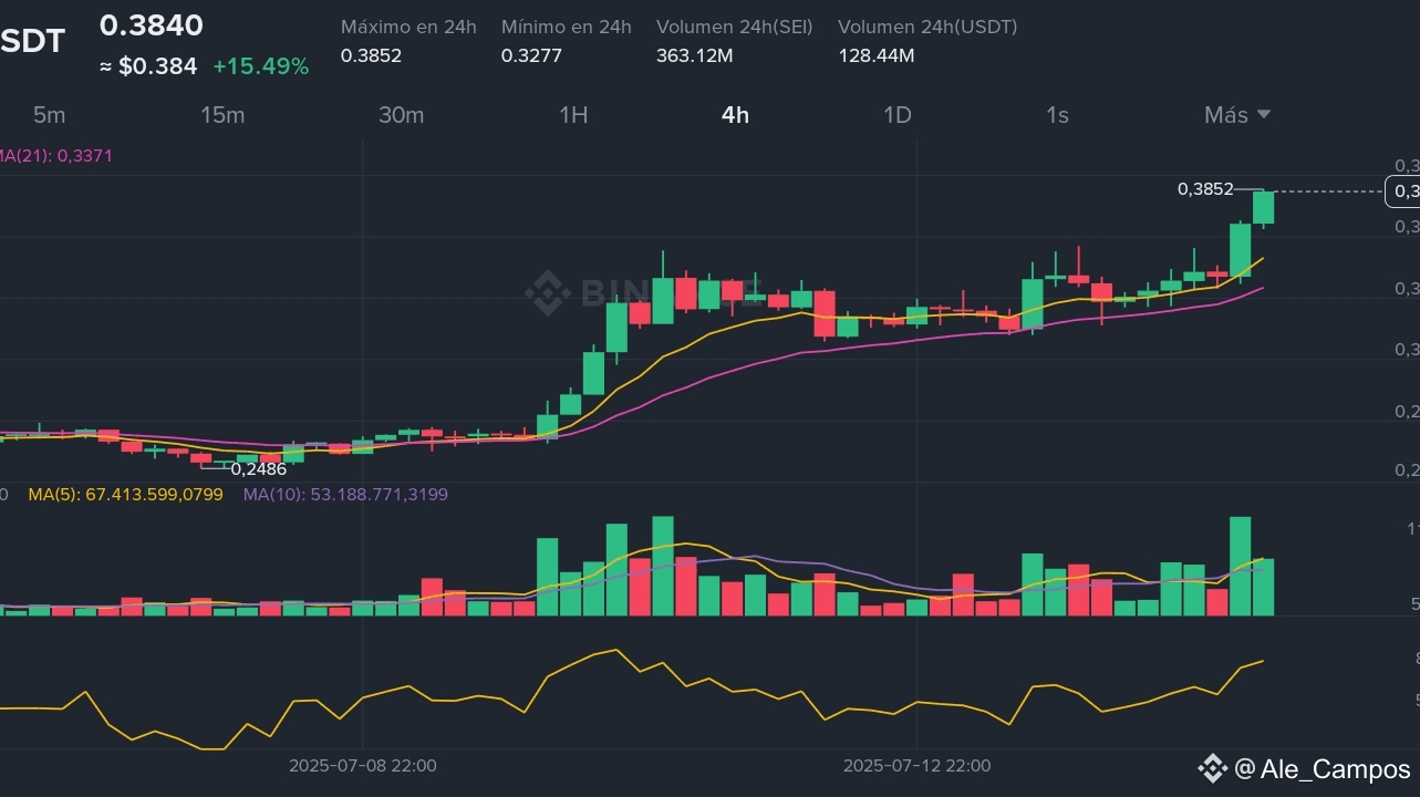 Aktueller Preis: ≈ $0.382 (↑15 % in 24 h; +51 % in 7 Tagen)