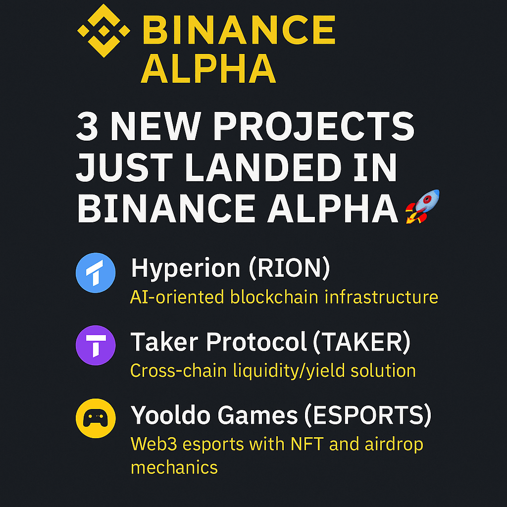 đ„Binance Alpha hat gerade 3 frische Projekte in die Airdrop-Arena gebracht: