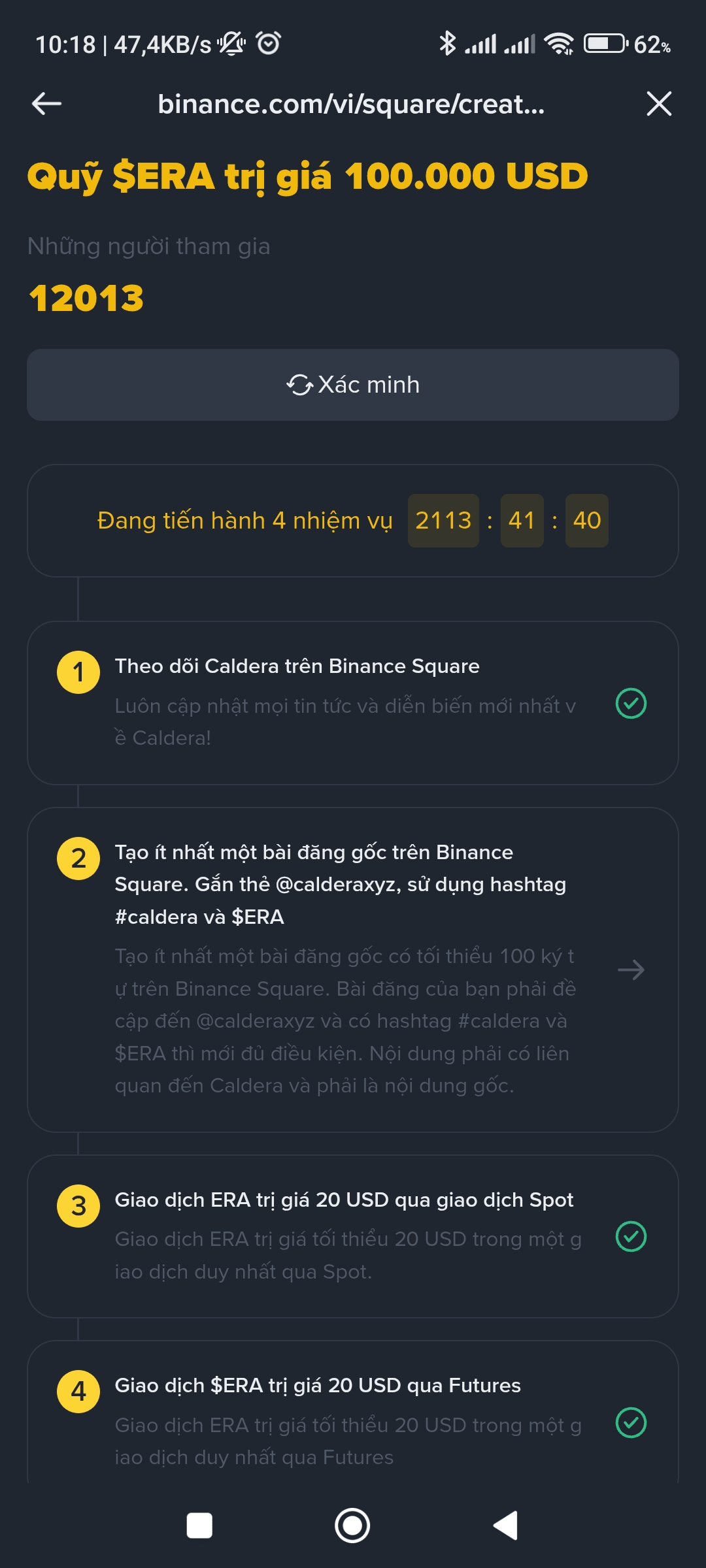 Es ist ganz einfach, sich anzumelden, um Belohnungen mit #ERA zu erhalten, nur mit 20 USD und dem Abschluss von 4 Aufgaben: