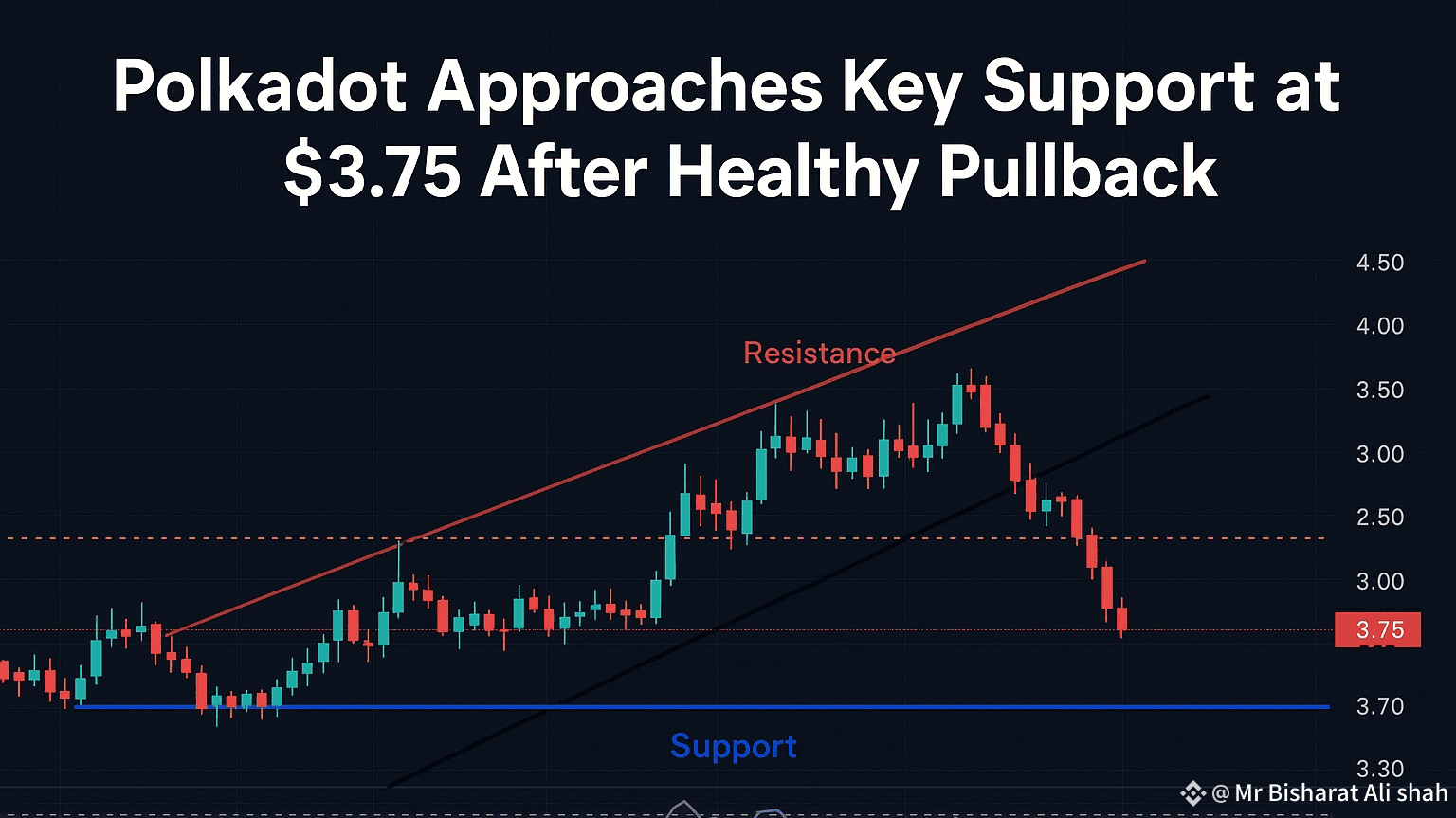 Der Rückgang von Polkadot scheint mehr eine Anpassung als eine Umkehr zu sein 🔁. Mit soliden Fundamentaldaten, Wachstum der Entwickler und DeFi-Plänen in der Pipeline hat DOT immer noch Potenzial für ein Comeback. Achten Sie genau darauf, wie es sich in der Nähe von 3,75 $ verhält – denn diese Bewegung könnte den nächsten großen Anstieg 📈 oder Rückgang 📉 entscheiden.