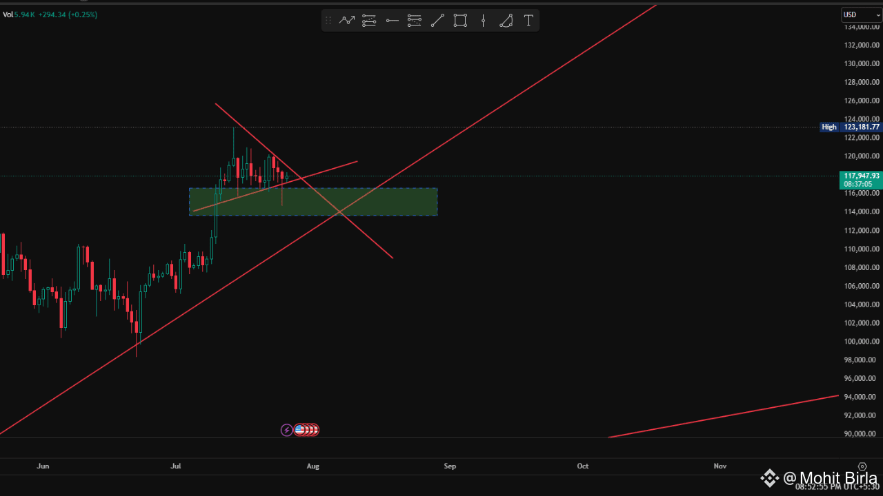 Bitcoin ist stabil, trendet und markiert die Zeit in einem engen Bereich. Ein Durchbruch über $123K, unterstützt durch Volumen, könnte eine starke Bewegung zu $135K, sogar in Richtung $150–160K, auslösen.