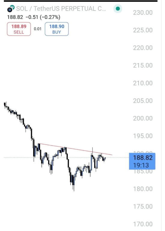 Ein frisches Diagramm von Abid Ali Jaffery hebt ein sich entwickelndes umgekehrtes Kopf-und-Schultern-Muster auf den niedrigeren Zeitrahmen von Solana hervor. Der Nackenbereich, der in der Nähe der Region von 189 bis 190 USD gezogen wird, wird wiederholt getestet, und ein bestätigter Ausbruch über diese Zone könnte eine gemessene Bewegung in Richtung der Bereiche von 210 USD bis 215 USD auslösen.