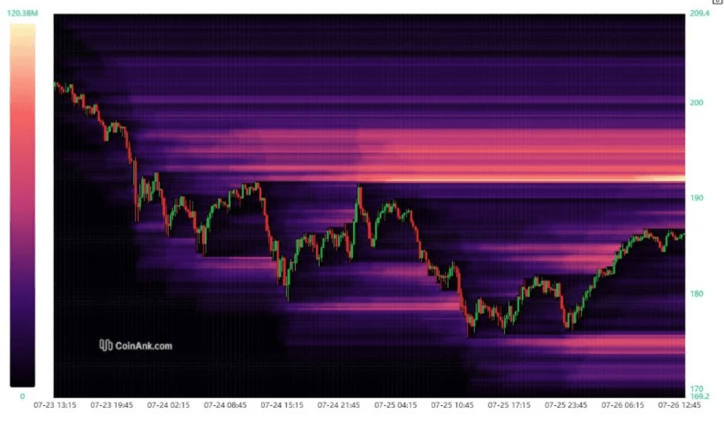 Solana-Liquidation-Heatmap zeigt wichtigen Short-Cluster nahe 200 USD