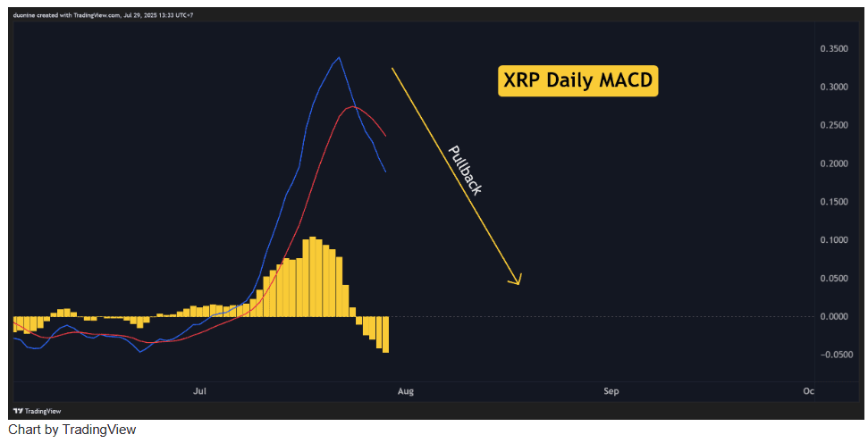 Der tägliche MACD hat letzten Freitag einen bärischen Kreuzungspunkt erreicht, und der Abwärtstrend hat sich beschleunigt. Im Moment gibt es keine Anzeichen, dass sich dieser Trend ändern könnte. Dies macht einen erneuten Test der $3 Unterstützung wahrscheinlich. Sollte es ein zweites Mal halten, könnten die Käufer eine Möglichkeit haben, diese Preisbewegung umzukehren und XRP wieder in die Offensive zu bringen.