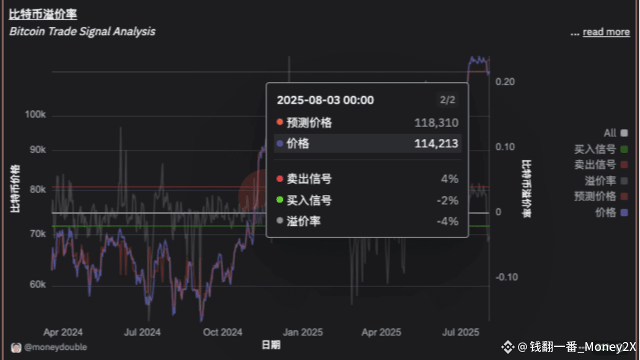 Wichtige Entdeckung: Mein Bitcoin-Prämienmodell hat gerade ein klares Kaufsignal gesendet! Am 3. August betrug die Prämienrate von Bitcoin **-4%, was eindeutig zeigt, dass der aktuelle Bitcoin-Preis erheblich unter seinem inneren Wert liegt**. Analysen historischer Daten zeigen, dass Bitcoin jedes Mal, wenn dieses Signal auftritt, in den folgenden 3-8 Wochen eine starke Erholung zeigt.