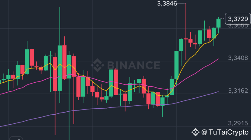 âĄď¸ Einschätzung: Der 15min-Chart zeigt weiterhin starke Kaufkraft, aber es kĂśnnten einige rote Kerzen auftreten, um âLuft zu holenâ, bevor 3.38 erneut getestet wird.