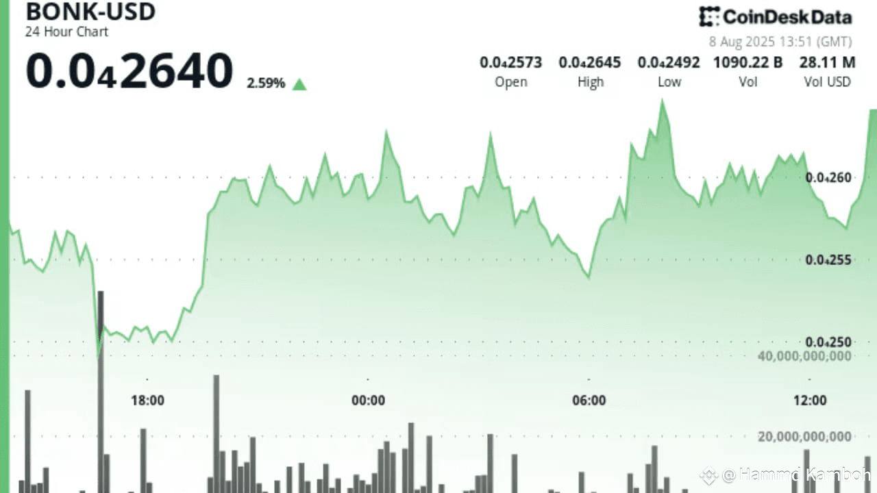Preisbewegung: BONK handelte in den letzten 24 Stunden zwischen $0.00002485 und $0.00002645 — eine Spanne von 4%.