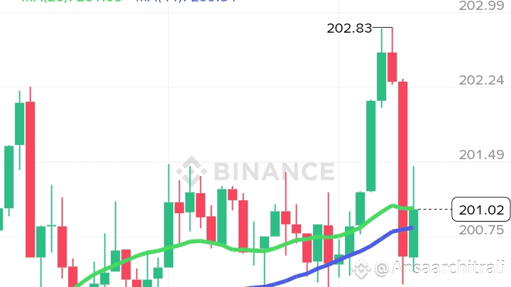Am 14. August 2025 um 4:03 Uhr PKT liegt SOL/USDT bei 201,02 $, was einem Gewinn von +4,99 % (Rs566.944,94) entspricht. Das 24-Stunden-Hoch von 204,96 $ und das Tief von 191,21 $, gepaart mit einem Volumen von 7,16 Millionen SOL, zeigen einen robusten Kaufdruck. Der 20-Tage-MA (201,03 $) und der 44-Tage-MA (200,84 $) nähern sich an und unterstützen einen stabilen Aufwärtstrend. Der MACD zeigt einen bullischen Kreuzungspunkt (DIF: 0,24, DEA: 0,23, MACD: 0,01), während der RSI im gesunden Bereich von 50-60 bleibt, was Raum für Wachstum vor überkauften Bedingungen suggeriert.