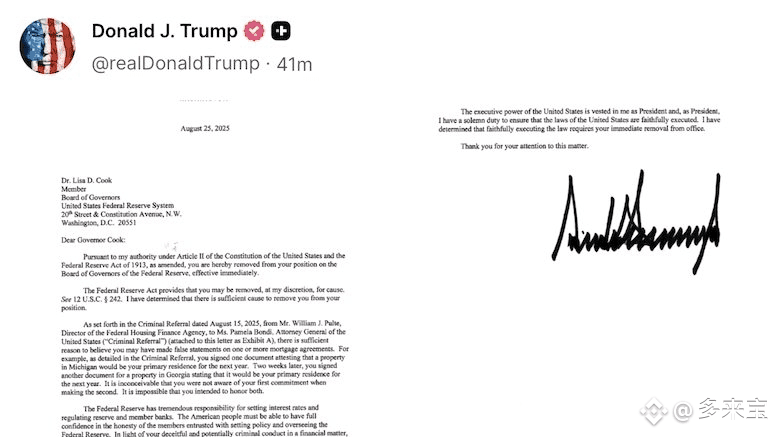 Am Abend des 25. Ortszeit veröffentlichte der US-Präsident Trump auf der sozialen Medienplattform „Truth Social“ einen offenen Brief, in dem er die Entlassung von Lisa Cook, Mitglied des Federal Reserve Board, ankündigte, mit sofortiger Wirkung.