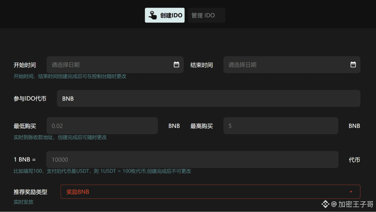 IDO/Vorverkauf einrichten: Verwenden Sie die Vorverkaufs-/IDO-Funktion der Plattform, um Preis, Soft Cap/Hard Cap, Fundraising-Dauer usw. festzulegen.