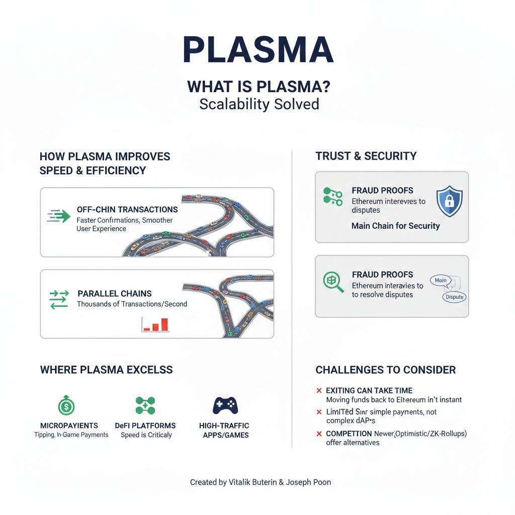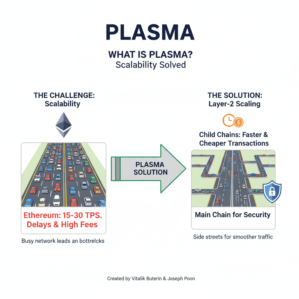 Die Blockchain-Technologie hat einen langen Weg zurückgelegt, aber sie ist nicht ohne Herausforderungen. Ein großes Problem ist die Skalierbarkeit – die Fähigkeit einer Blockchain, viele Transaktionen gleichzeitig zu verarbeiten. Ethereum kann beispielsweise nur etwa 15–30 Transaktionen pro Sekunde verarbeiten. Zu Stoßzeiten kann dies zu Verzögerungen und hohen Gebühren führen, was es schwierig macht, dass Apps reibungslos funktionieren. Hier kommt Plasma ins Spiel, eine Lösung, die von den Ethereum-Mitbegründern Vitalik Buterin und Joseph Poon entwickelt wurde. Plasma ist darauf ausgelegt, Blockchains schneller, günstiger und skalierbarer zu machen, ohne die Sicherheit zu opfern. Was ist Plasma? Plasma ist eine Layer-2-Skalierungslösung, was bedeutet, dass sie auf Ethereum aufbaut, anstatt es zu ersetzen. Es führt kleinere, unabhängige Ketten ein, die als Kindketten bezeichnet werden. Diese Ketten bearbeiten die meisten Transaktionen, während die Ethereum-Hauptkette sich auf Sicherheit und Überprüfung konzentriert. Stellen Sie sich das wie eine belebte Stadtstraße vor: Statt dass jedes Auto über die Hauptstraße fährt, schafft Plasma Nebenstraßen für schnellere Reisen. Die Hauptstraße überwacht immer noch alles, um Sicherheit zu gewährleisten, aber der Verkehr fließt viel reibungsloser.