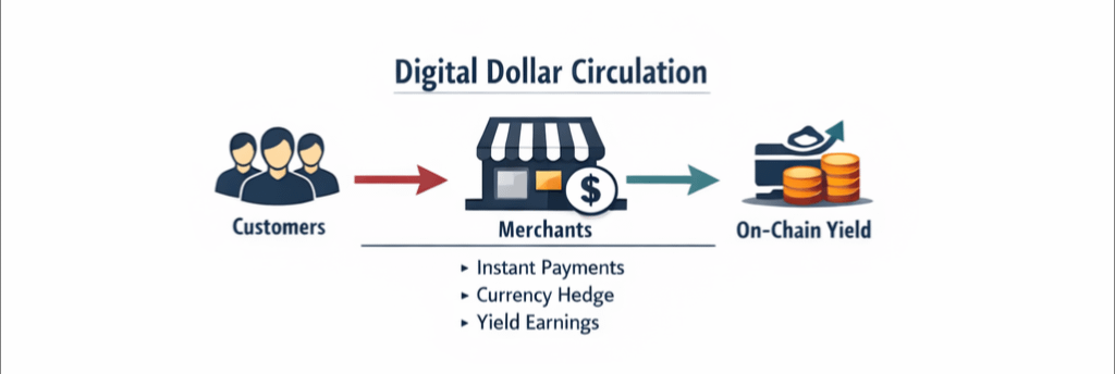 Because once digital dollars can circulate at the street level total value locked stops being the main metric. Total value used becomes the signal.