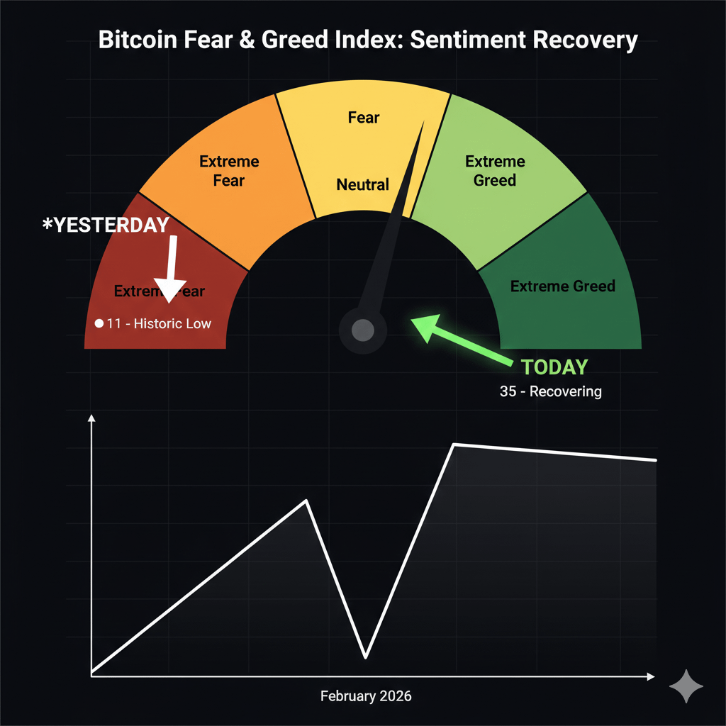 The market's Fear & Greed Index had plunged to "Extreme Fear" (11 points) yesterday, reaching a historic low. Today, we're observing a noticeable improvement as sentiment begins to recover.