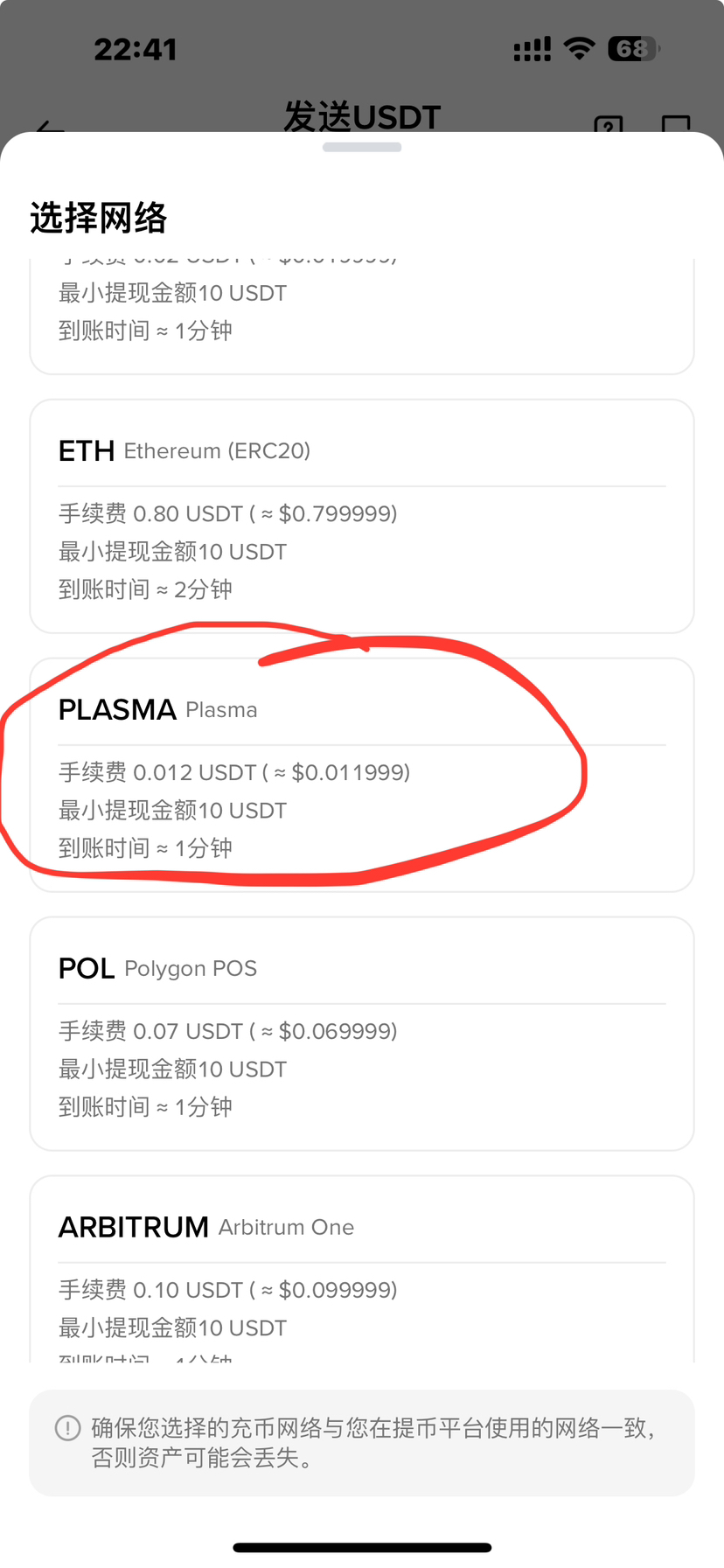 Das einfachste Beispiel, wie im Bild, Abhebung von USDT an der Binance-Börse, die Wahl der Plasma-Kette ist sowohl kostensparend als auch schnell.
